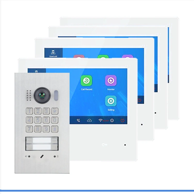 Systém umožňuje ke každému zvonkovému tlačítku přiřadit až 4 monitory, nebo audio sluchátka a také rozšířit o další dveřní stanice.