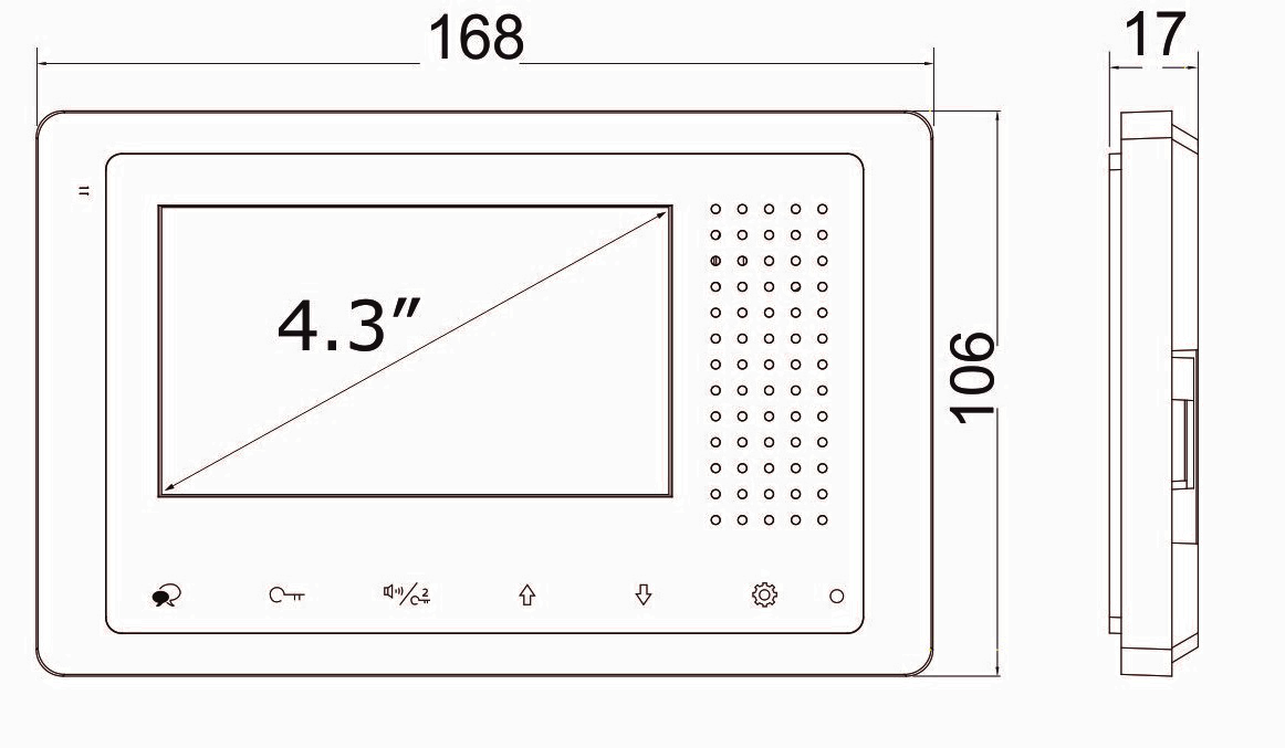 Rozměr monitoru : 106x168x17mm (v x š x h)