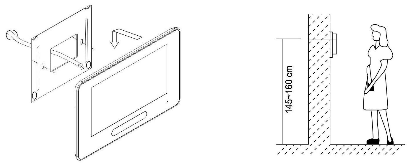 • monitor se připojí na dvoudrátovou domovní sběrnici pomocí šroubových svorek (2 pólová svorkovnice), možnost zapojit odbočkově nebo průběžně