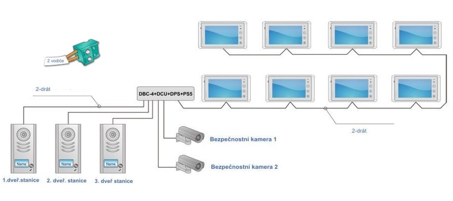 - max. 4 monitory v bytě se stejným ID, připojují se na stejnou 2-drátovou sběrnici
