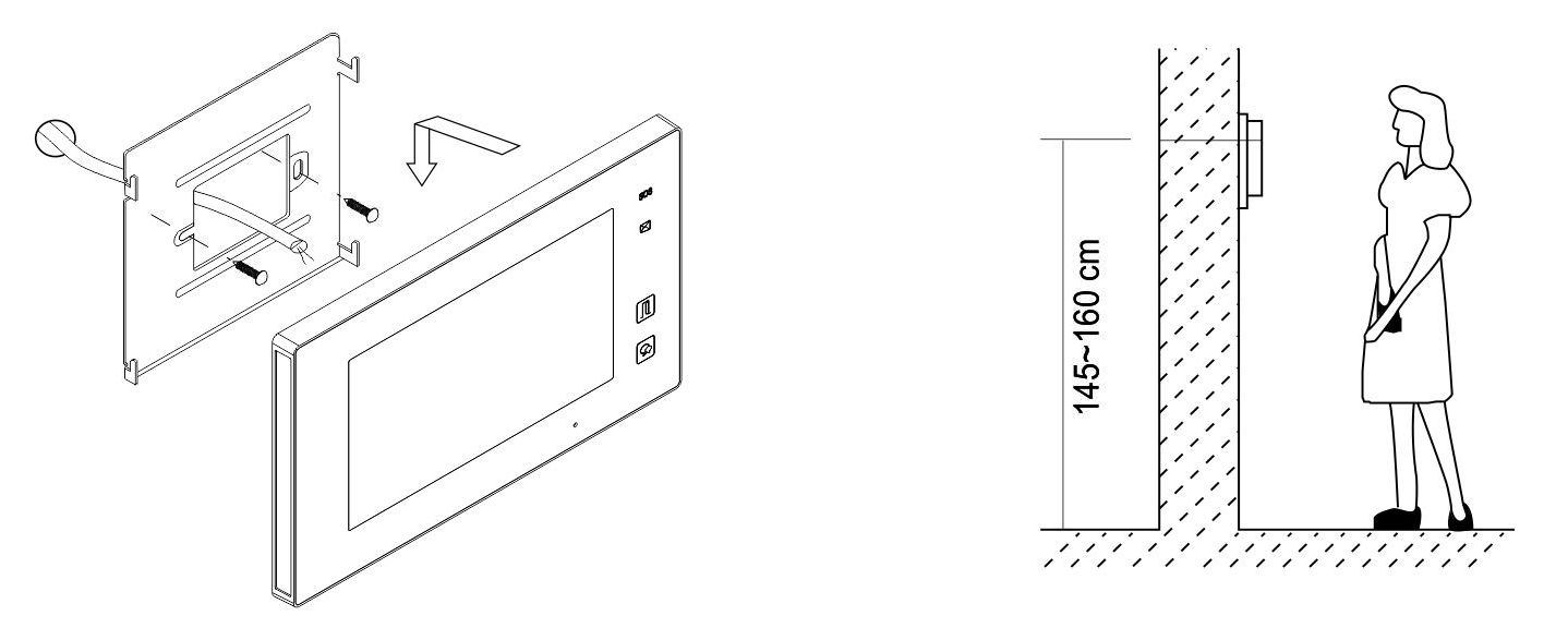 - monitor se připojí na dvoudrátovou domovní sběrnici pomocí šroubových svorek (2 pólová svorkovnice), možnost zapojit odbočkově nebo průběžně