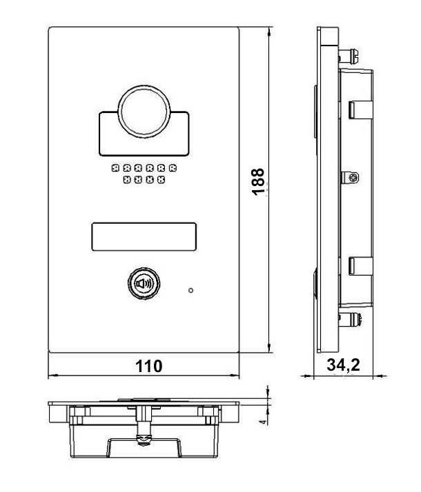 ...Rozměry dveřní stanice : 188x110x34mm (v x š x h) ......