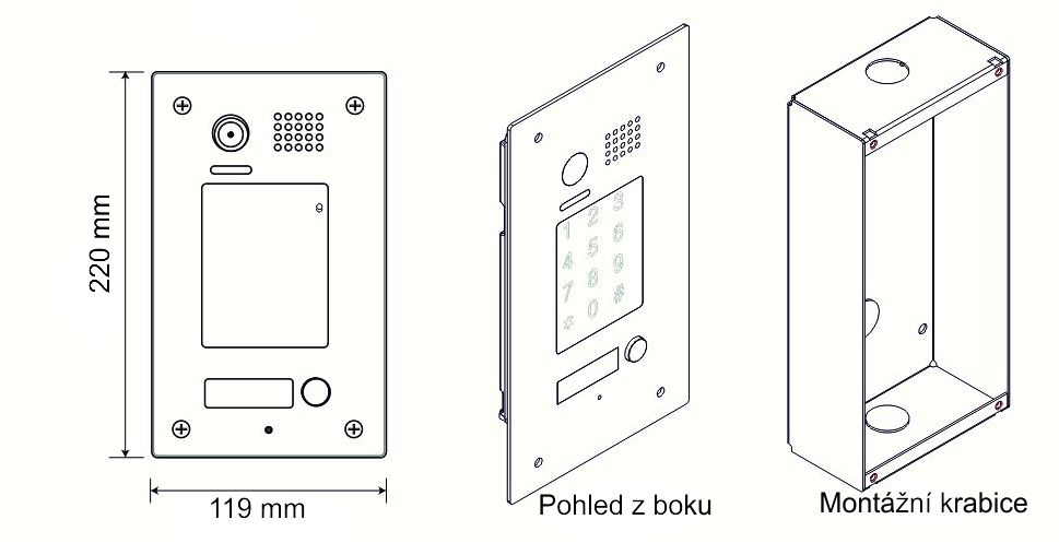 Rozměry dveřní stanice : 220x119x2mm (v x š x h)