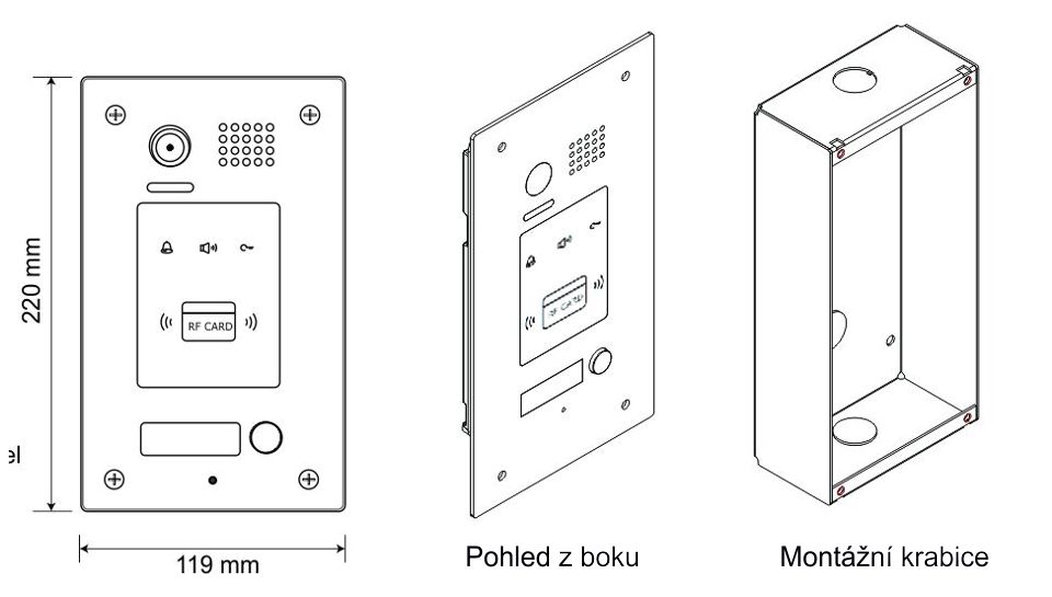 Rozměry dveřní stanice : 220x119x2mm (v x š x h)