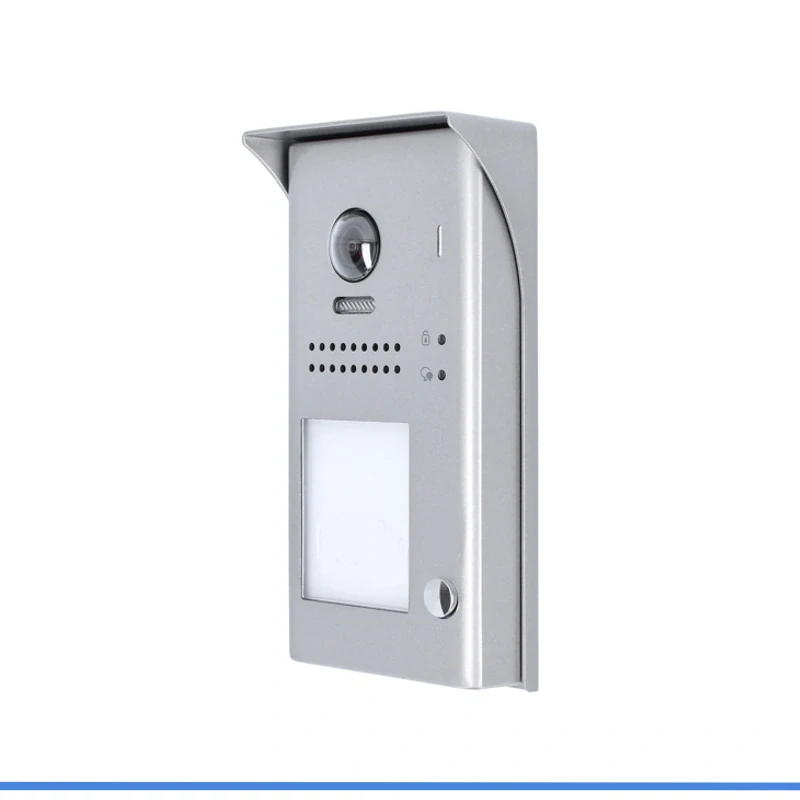 Dveřní stanice pro jedno-účastnickou instalaci s přímou tlačítkovou volbou. 1x zvonek. Barevná kamera, CCD 1/3", širokoúhlý objektiv 105°, reproduktor. Ovládání jednoho zámku. Venkovní, stupeň krytí IP54, povrchová montáž.