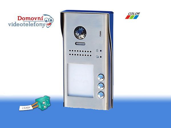 Dveřní stanice pro víceúčastnickou instalaci s přímou tlačítkovou volbou s otevíráním vstupu pomocí RFID čtečky. 3x zvonek. Barevná kamera, CCD 1/3", širokoúhlý objektiv 170°, reproduktor. Ovládání jednoho zámku. Venkovní, stupeň krytí IP54, povrchová montáž.