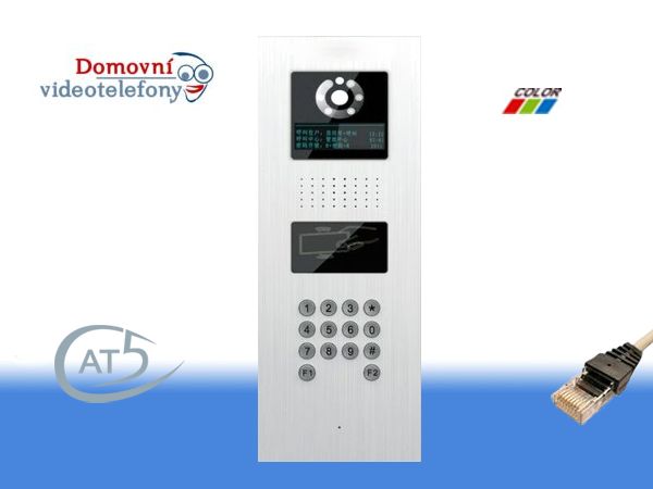 Dveřní stanice pro multiúčastnickou instalaci s přímou tlačítkovou volbou pomocí kovové klávesnice. Barevná kamera, CMOS 1,3Mpix 1/3", mikrofon a reproduktor. Ovládání zámku. Hliníkový kryt. 3,5" displej. Venkovní provedení. Rozvod po běžné CAT5 TCP/IP síti, šifrovaná komunikace.