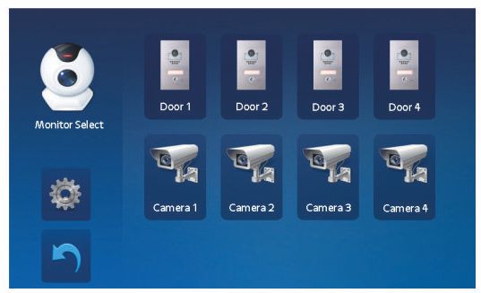 Výběr kamery je prováděn z menu monitoru (ikona KAMERA1/KAMERA2/KAMERA3/KAMERA4)