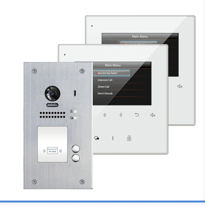 Sestava domácího videotelefonu, určeno pro dům, nebo jednu bytovou jednotku. Sestava obsahuje vše potřebné pro provedení instalace. Systém lze dále rozšiřovat o další monitory, dveřní kamerové stanice, externí kamery a přídavné moduly umožňující např. přesměrování na mobilní telefon, nebo ovládání vjezdové brány, el. spotřebičů.