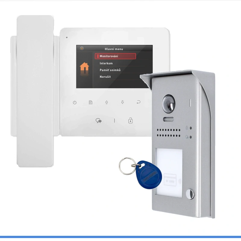 Sestava domácího videotelefonu, určena pro dům, nebo jednu bytovou jednotku. Sestava obsahuje vše potřebné pro provedení instalace. Systém lze dále rozšiřovat o další monitory, dveřní kamerové stanice, externí kamery a přídavné moduly umožňující např. ovládání vjezdové brány, el. spotřebičů.