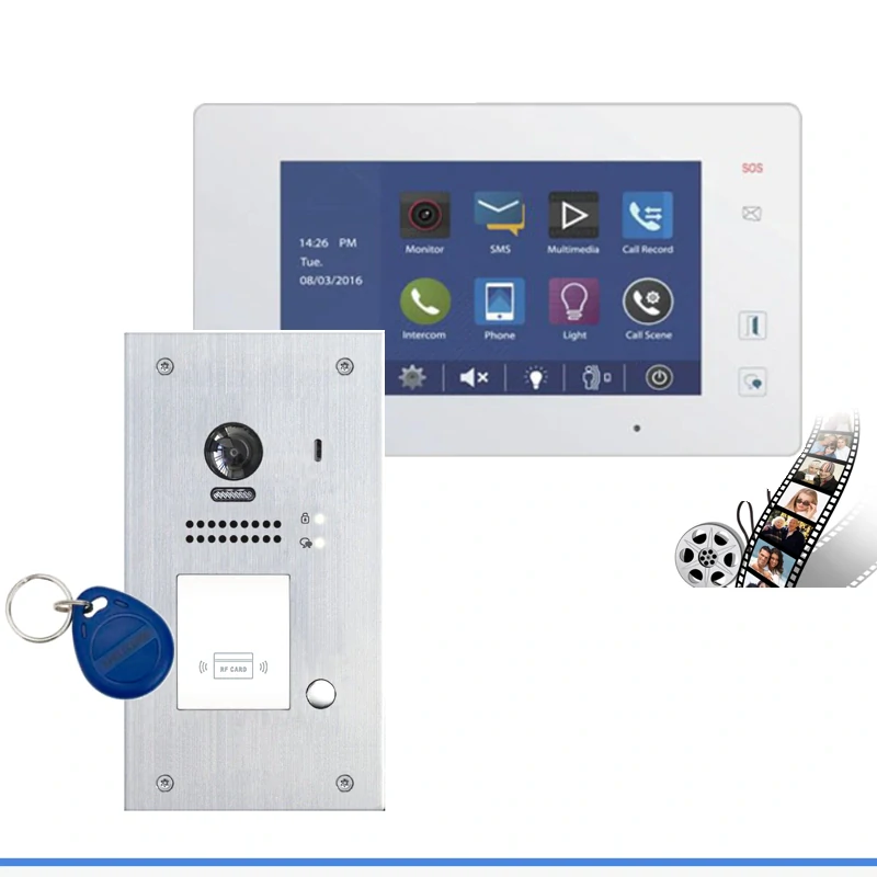 Komfortní sestava domácího videotelefonu, určeno pro dům, nebo jednu bytovou jednotku. Sestava obsahuje vše potřebné pro provedení instalace. Systém lze dále rozšiřovat o další monitory, dveřní kamerové stanice, externí kamery a přídavné moduly umožňující např. přesměrování na mobilní telefon, nebo ovládání el. spotřebičů.