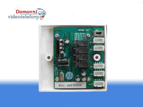 Modul rozbočovače a zesilovače domovních monitorů.Umožňuje na 4-drátový kamerový systém realiozovat systémem zapojený do hvězdy a kaskády (tzn. nejen liniově). Zároveň zesiluje videosignál a násobí rozpětí sítě. Montáž na stěnu, bílá plastová krabička 86x86mm. Pokud nemá zapojen přívod napětí pracuje jako pasivní rozbočovač.