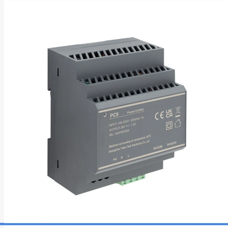 Výstupní napětí DC 28 V, montáž na DIN lištu nebo zeď, vestavěný oddělovač výkonu DPS, svorkovnicové kontakty pro přívod AC 100–240 V, zapojte také ukotvení. Snadno tak může zvýšit napětí v případě vyššího úbytku na trase. Maximální výkon zdroje je 36 W. Při ideálním vedení může napájet až 6 zařízení.