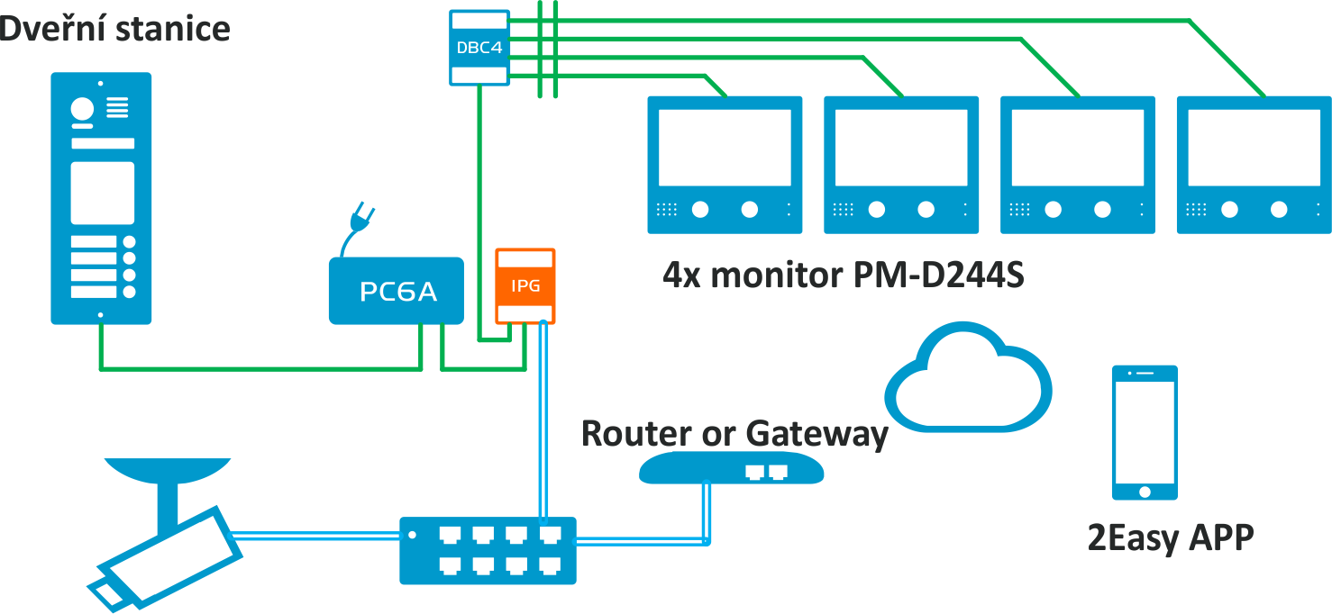Námi nabízíme sestavy domácích videotelefonů pro rodinné domy, bytové jednotky, kanceláře, školy, obsahují vše potřebné pro provedení instalace. Sestavy lze dále rozšiřovat o další monitory, dveřní kamerové stanice, externí kamery a přídavné moduly umožňující např. přesměrování na mobilní telefon, nebo ovládání vjezdové brány, el. spotřebičů..
