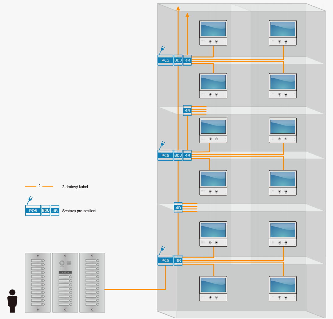 Námi nabízíme sestavy domácích videotelefonů pro rodinné domy, bytové jednotky, kanceláře, školy, obsahují vše potřebné pro provedení instalace. Sestavy lze dále rozšiřovat o další monitory, dveřní kamerové stanice, externí kamery a přídavné moduly umožňující např. přesměrování na mobilní telefon, nebo ovládání vjezdové brány, el. spotřebičů..